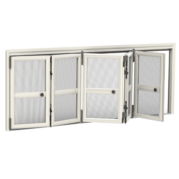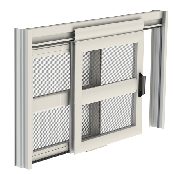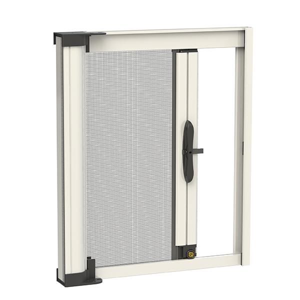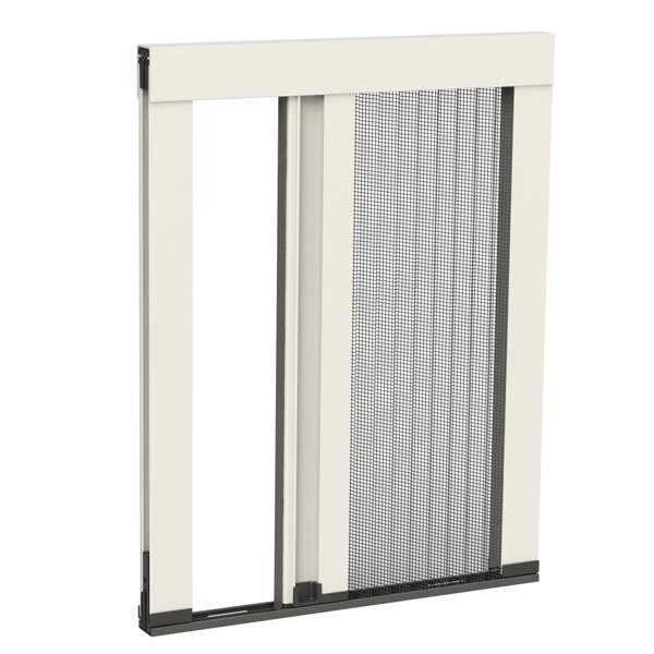 Rete: in alluminio brunita di serie (argento opzionale), può essere richiesta anche in fibra di vetro o acciaio inox, Tuffscreen™, PetScreen. Per installazioni in zone esposte a salsedine, si sconsiglia l’utilizzo di rete in alluminio o acciaio inox