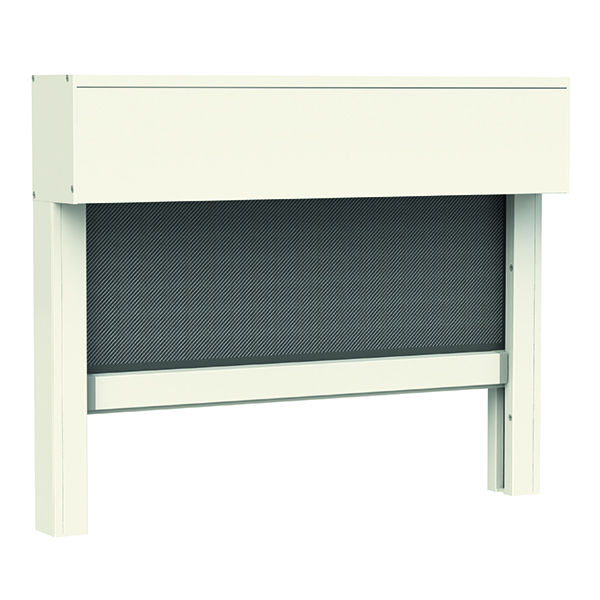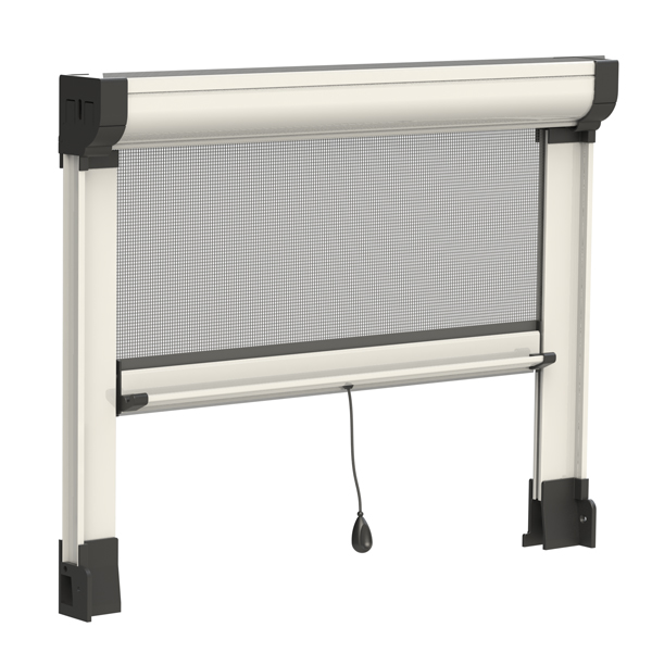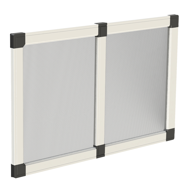 Rete: in alluminio brunita di serie (argento opzionale), può essere richiesta anche in fibra di vetro o acciaio inox, Tuffscreen™, Petscreen. Per installazioni in zone esposte a salsedine, si sconsiglia l’utilizzo di rete in alluminio o acciaio inox