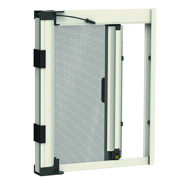 Note: adatta per porte-finestre fino a 180 cm di larghezza, guida bassa dallo spessore di soli 2 mm. Elevata tenuta della rete al vento forte, grazie ad un sistema brevettato che ne impedisce la fuoriuscita.